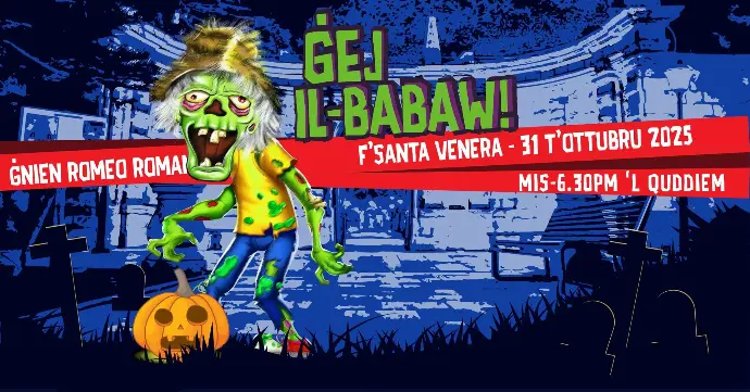 Get ready for a spooky night of thrills and chills at Ġej il-Babaw in Santa Venera's Halloween event at the beautiful Ġnien Romeo Romano!